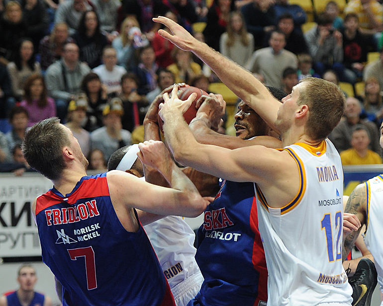 После того как одетый в мускулы защитник едва не оторвал армейское кольцо, "Химки" повели 18:12. А чуть позже – развили свой перевес. Пол Дэвис завершил изящную комбинацию, расчерченную Моней, – и вот уже "+7". Петтери Копонен реализовал свой первый из пяти трехочковых – получите "+10".