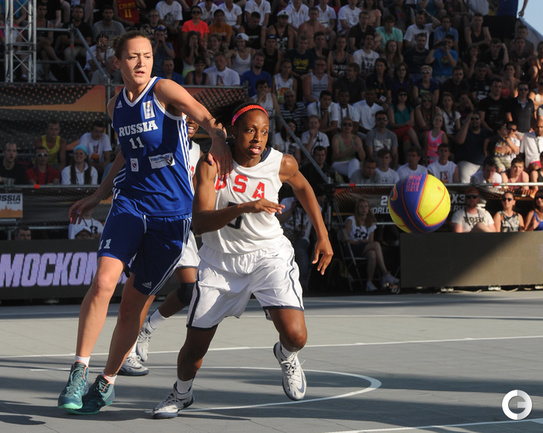 Москва (Россия). Чемпионат мира. Женщины. Финал. РОССИЯ – США – 8:15. Женская сборная России проиграла в финале чемпионата мира по баскетболу три на три команде США. Эта медаль – первая в истории женской национальной команды. Ранее мужская сборная России взяла бронзовые медали, обыграв Литву со счетом 19:18. Фото - Федор Успенский, "СЭ"