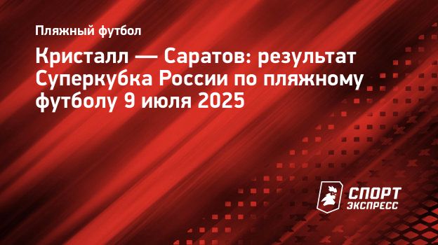 «Кристалл» победил «Саратов» в матче за OLIMPBET Суперкубок России по пляжному футболу 2025 года.