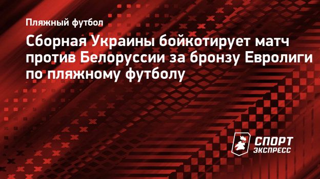 Сборная Украины по пляжному футболу решила бойкотировать матч за третье место суперфинала Евролиги против Белоруссии, сообщает ТАСС со ссылкой на Ассоциацию пляжного футбола Украины.
