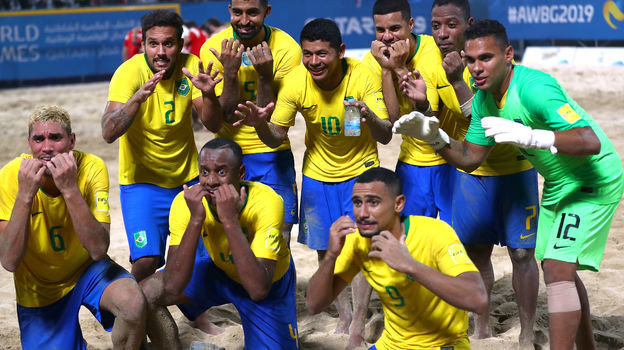 Сборная России по пляжному футболу в финале первых Всемирных пляжных играх в Дохе уступила команде Бразилии — 3:9.