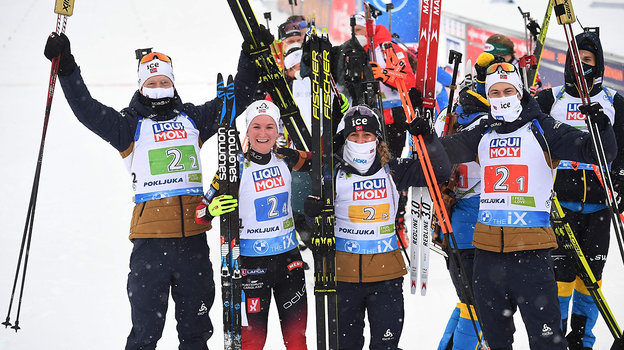 Сборная Норвегии выиграла смешанную эстафету на чемпионате мира-2021 в Поклюке (Словения). Вторыми стали австрийцы, третье место у Швеции.