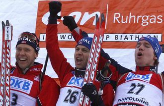 Положение в общем зачете: 1. Бьорндален - 338. 2. Грайс (Германия) - 321 очка. 3. ЯРОШЕНКО - 300. 4. ЧЕРЕЗОВ - 290. 5. Ферри (Швеция) - 264. 6. Ханеволд - 263. 7. КРУГЛОВ - 244… 9. ЧУДОВ - 241… 12. РОЖКОВ - 188… |