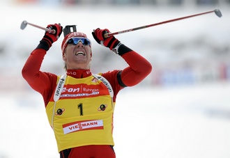 Лидер общего зачета Кубка мира Эмиль Хегле Свендсен выиграл в субботу третью из пяти гонок нового сезона. Причем норвежец пока неизменно поднимается на подиум. На втором этапе в Хохфильцене Свендсен праздновал успех во второй раз, после спринта финишировав первым в гонке преследования. Вторым стал его соотечественник Оле Эйнар Бьорндален, уступивший победителю 9,4 секунды. |