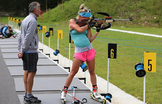 Одна из лидеров сборной Франции Мари Дорен-Абер продолжает подготовку к сезону, несмотря на то что находится на восьмом месяце беременности, информирует sport.segodnya.ua. Ребенок должен родиться в первые дни октября, а уже в начале 2015 года спортсменка планирует выступить на своем первом старте.