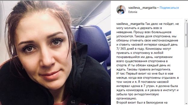 Российская биатлонистка Маргарита Васильева в Инстаграме рассказала о том, почему пропустила три допинг-теста подряд. Спортсменке грозит дисквалификация за нарушение антидопинговых правил.