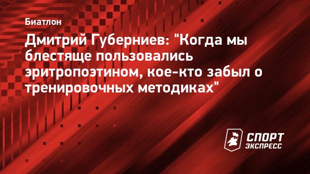 Дмитрий Губерниев: "Когда мы блестяще пользовались эритропоэтином, кое-кто забыл о тренировочных методиках"