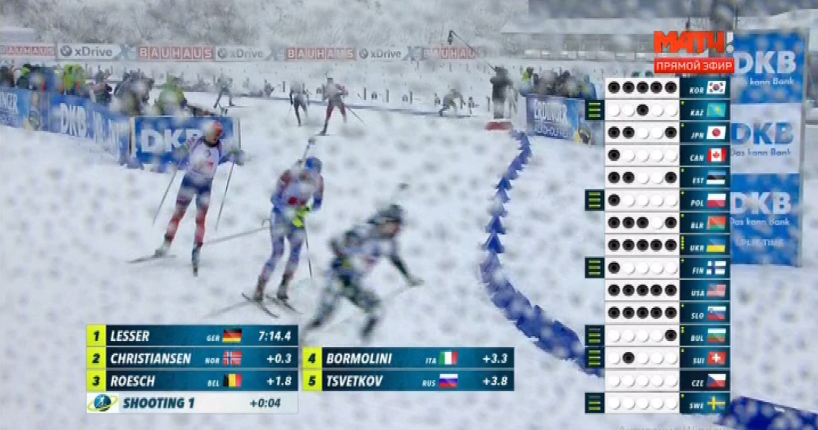 Сзади россиянина поджимают Рёш и Моравец, а Кристиансен уже только 6-й (с двумя доппатронами), но всего в 20 секундах от лидера.