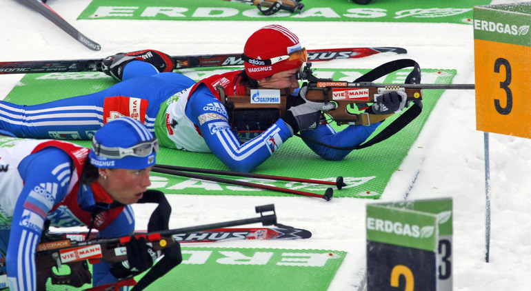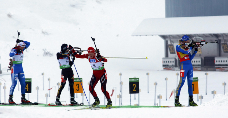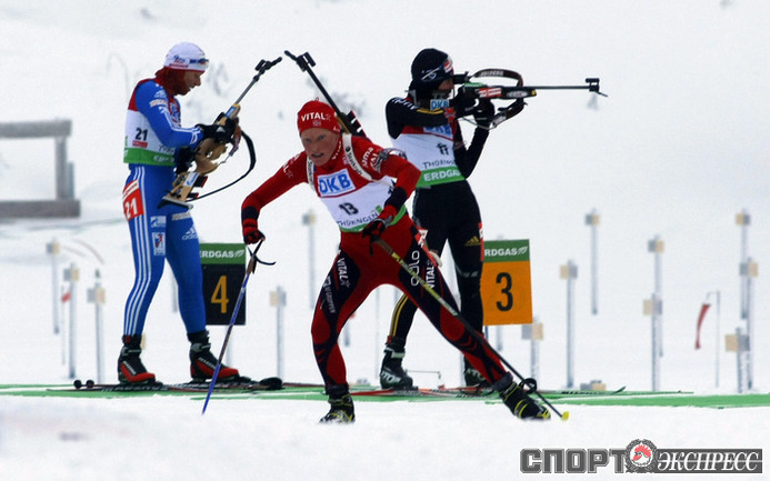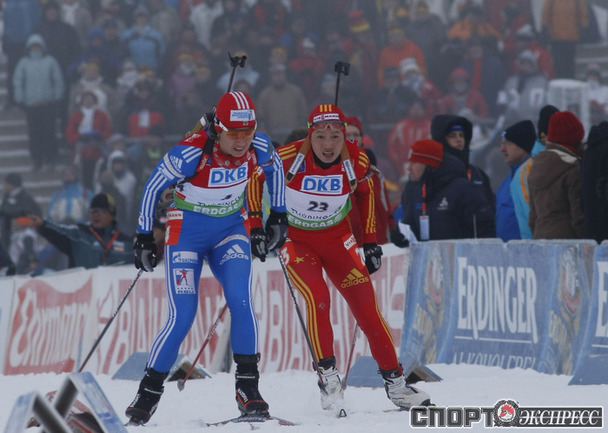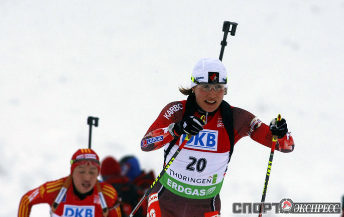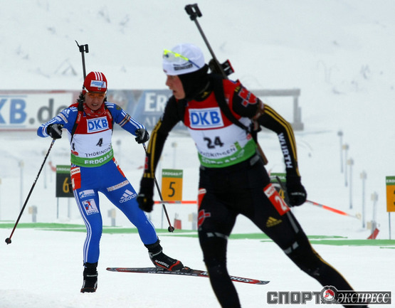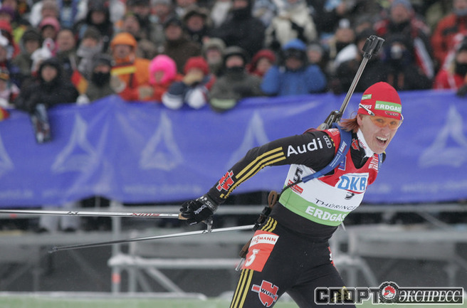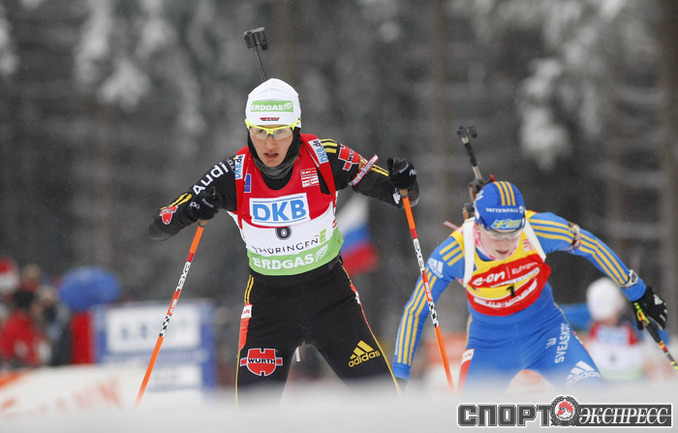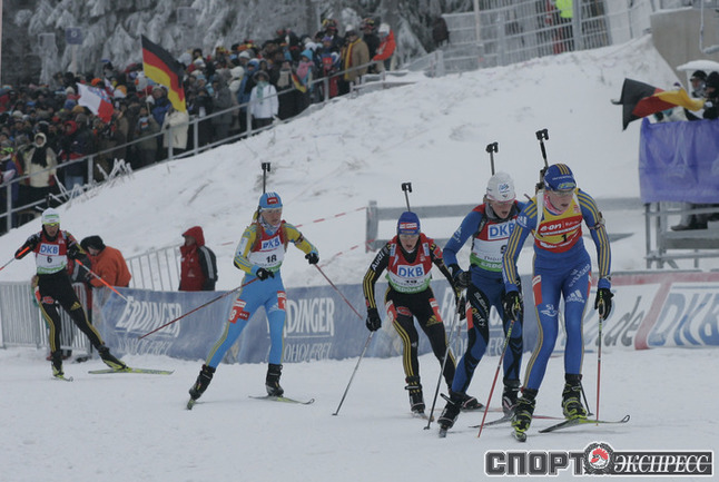 Оберхоф (Германия). Кубок мира. 4-й этап. Женщины. Масс-старт, 12,5 км. 1. Хенкель (Германия) - 40.53,66 (2 шт. круга). 2. Х. Юнссон (Швеция) - отставание 23,3 (2). 3. Бергер (Норвегия) - 40,2 (2). 4. Бек (Германия) - 51,3 (3). 5. Семеренко Вита (Украина) - 54,3 (2). 6. Зайцева (Россия) - 1.15,2 (4). 7. Хаусвальд (Германия) - 1.22,8 (6). 8. Богалий-Титовец (Россия) - 1.24,8 (4). Фото - Александр ВИЛЬФ, "СЭ"