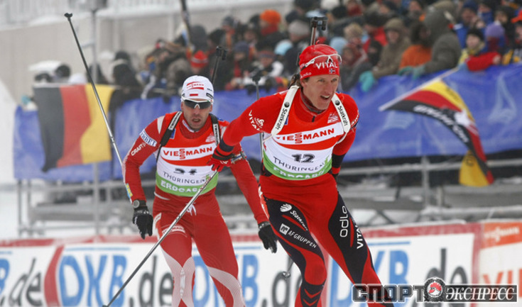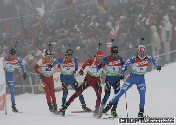 Оберхоф (Германия). Кубок мира. 4-й этап. Мужчины. Масс-старт 15 км. 1. Бьорндален (Норвегия) - 38.57,3 (1 шт. круг). 2. Т. Берк (США) - отставание 1.02,9 (2). 3. Сикора (Польша) - 1.40,6 (3).4. Устюгов (Россия) - 1.49,2 (5). 5. Пайффер (Германия) - 1.55,9 (5). 6. Ус (Норвегия) - 3.03,9 (4). 7. С. Фуркад (Франция) - 2.04,4 (4)…8. КРУГЛОВ (Россия) - 2.07,2 (2). Норвежец Оле Эйнар Бьорндален одержал уверенную победу на завершающей этап Кубка мира в Оберхофе гонке с общего старта.