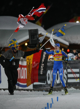 16.01.2010. В женском масс-старте на 5-м этапе Кубка мира в Рупольдинге свою четвертую в сезоне победу одержала лидер общего зачета шведка Хелена ЮНССОН. Лучшая из россиянок Ольга Медведцева стала десятой. Фото Александр ВИЛЬФ, "СЭ"