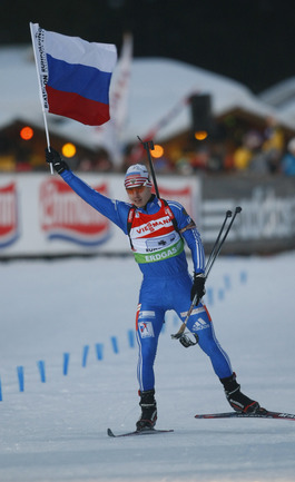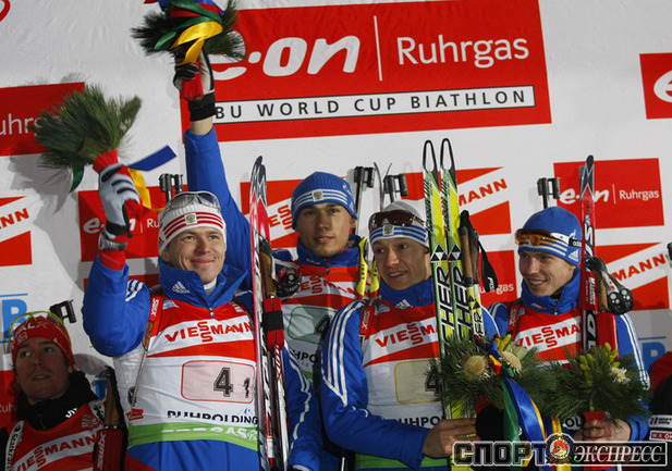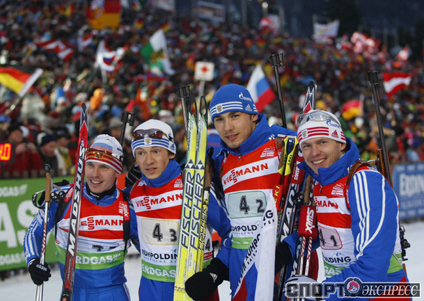 Мужская сборная России уверенно выиграла последнюю предолимпийскую эстафету. Иван Черезов, Антон Шипулин, Максим Чудов и Евгений Устюгов блестяще провели каждый свой этап. Фото - Александр ВИЛЬФ, "СЭ"