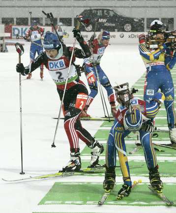 Шестикратный олимпийский чемпион Оле Эйнар Бьорндален выиграл гонку преследования на шведском этапе Кубка мира. Кайса Мякяряинен сделала золотой дубль в Эстерсунде, выиграв спринт и гонку преследования. Представители российской сборной вновь остались без пьедестала. Фото REUTERS