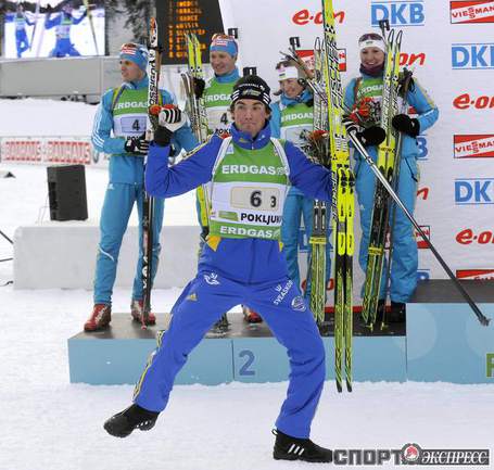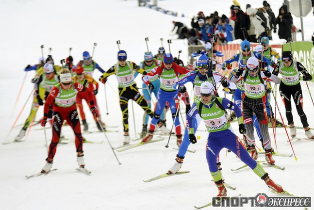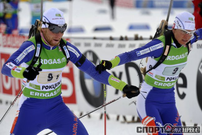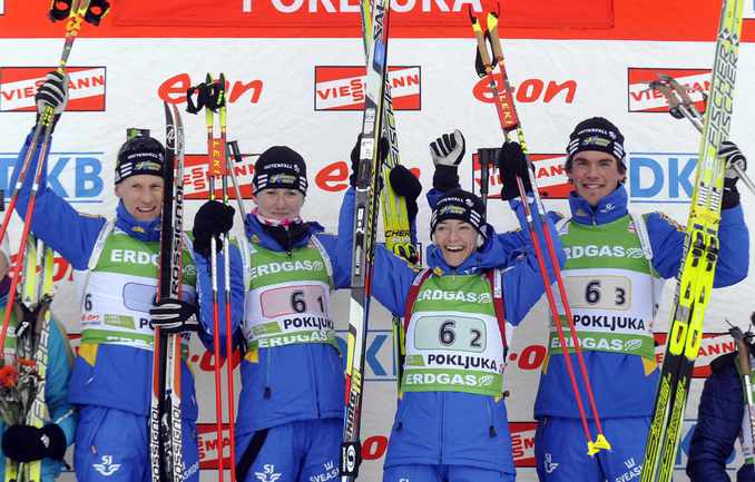 Биатлон. Поклюка (Словения). Кубок мира. 3-й этап. Смешанная эстафета (2х6 и 2х7,5км). Шведы выиграли смешанную эстафету в Поклюке, россияне - четвертые после команд Украины и Франции. Фото REUTERS