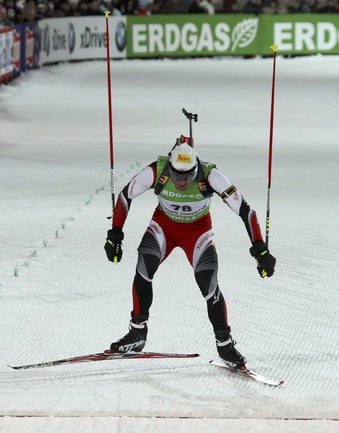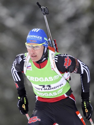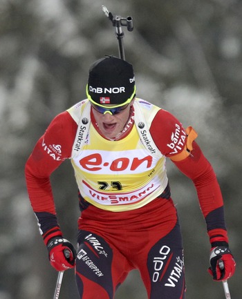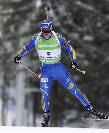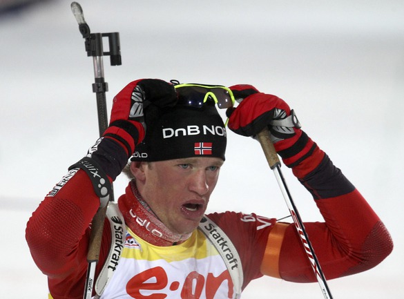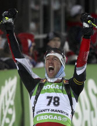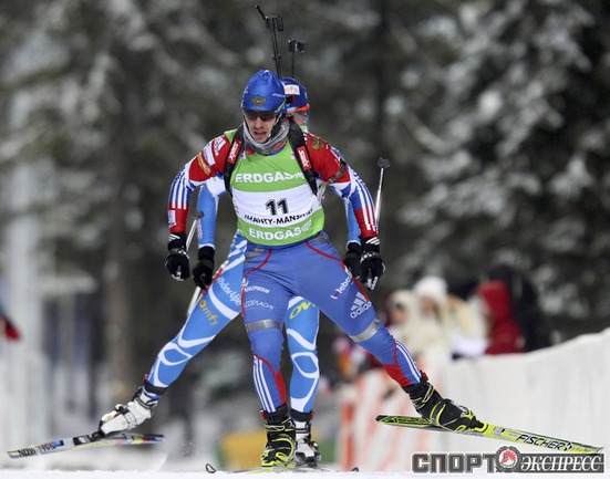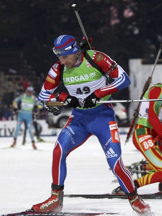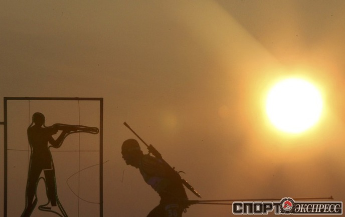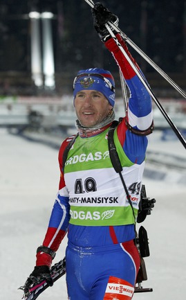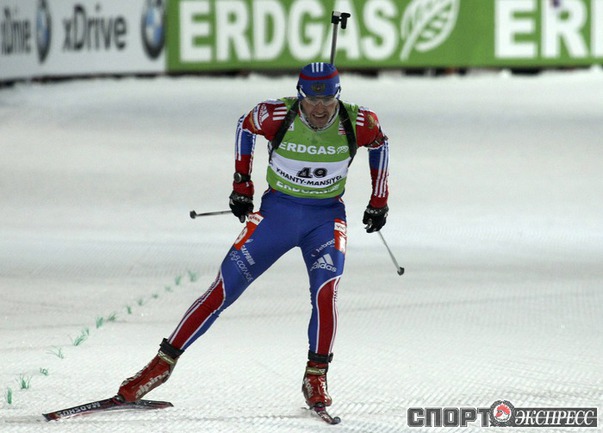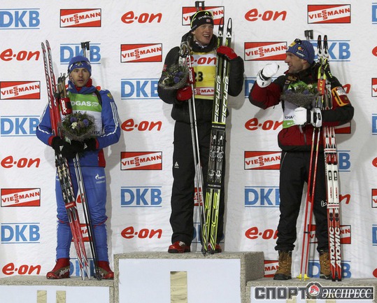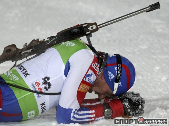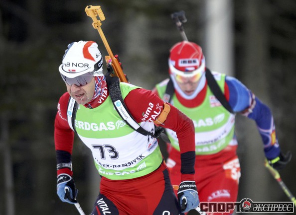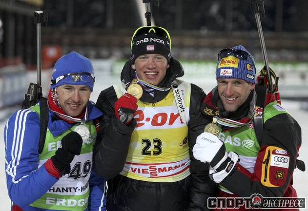 Биатлон. Ханты-Мансийск. Чемпионат мира. Мужчины. Индивидуальная гонка 20 км. 1. Т. Бе (Норвегия) - 48.29,9 (1 штрафная минута). 2. Максимов (Россия) - отставание 40,0 (0). 3. Зуманн (Австрия) - 45,5 (1). Фото REUTERS
