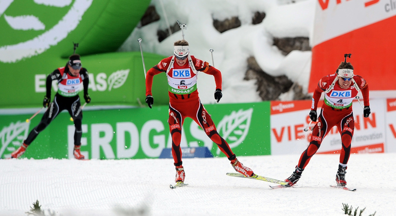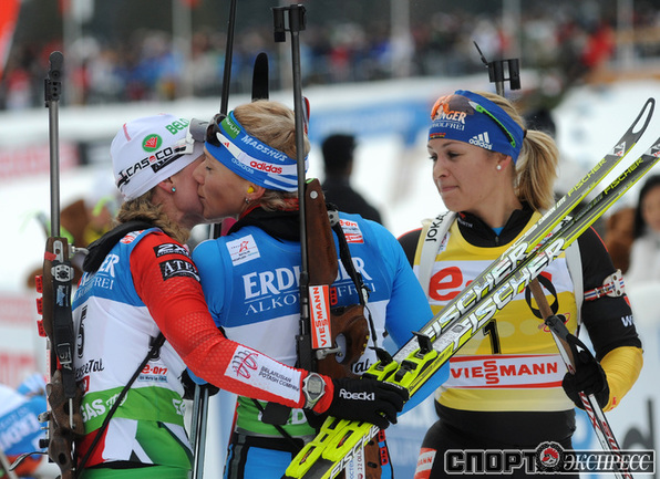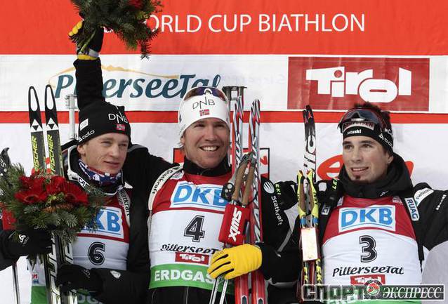 Биатлон. Хохфильцен. Кубок мира. 2-й этап. Гонка преследования, 10 км. 1. Домрачева (Белоруссия) - 29.34,4 (2 штрафных круга). 2. ЗАЙЦЕВА (Россия) - отставание 0,3 (1). 3. Нойнер (Германия) - 3,1 (2). Мужчины. 12,5 км. 1. Свендсен (Норвегия) - 33.09,0 (2 шт. круга). 2. Т. Бе (Норвегия) - отставание 0,1 (1). 3. Вегер (Швейцария) - 4,9 (1). 4. Бергман (Швеция) - 13,3 (2) 5. Бьорндален (Норвегия) - 17,1 (1). 7. ШИПУЛИН (Россия) - 21,8 (1)... Фото AFP и REUTERS