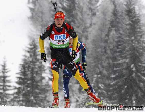 Биатлон. Хохфильцен. Кубок мира. 3-й этап. Мужчины. Спринт 10 км. 1. Т. Бе (Норвегия) - 23.57,2 (1 штрафной круг). 2. М. Фуркад (Франция) - отставание 4,0 (2). 3. ЛАПШИН (Россия) - 17,2 (0). 4. Шемп (Германия) - 18,7 (1). 4. Беатрикс (Франция) - 18,7 (1). Женщины. Спринт 7,5 км. 1. ЗАЙЦЕВА (Россия) - 20.36,6 (1 штрафной круг). 2. Домрачева (Белоруссия) - отставание 13,9 (2). 3. Экхольм (Швеция) - 30,2 (1). Фото AFP и REUTERS