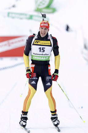 Биатлон. Холменколлен. Кубок мира. 7-й этап. Мужчины. Спринт, 10 км. 1. ГАРАНИЧЕВ (Россия) - 25.22,2 (0 штрафных кругов). 2. Пайффер (Германия) - отставание 0,7 (0). 3. Свендсен (Норвегия) - 11,8 (2). Женщины. Спринт 7,5 км. 1. Нойнер (Германия) - 20.41,9 (0). 2. Домрачева (Белоруссия) - отставание 38,2 (1). 3. Т. Бергер (Норвегия) - 48,9 (1)...6. ЗАЙЦЕВА - 1.11,2 (1). Фото AFP и REUTERS