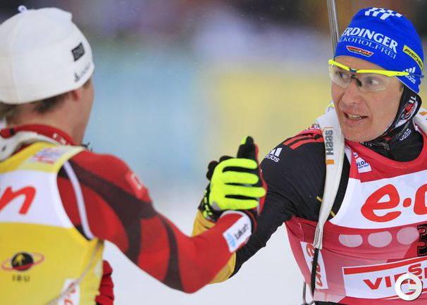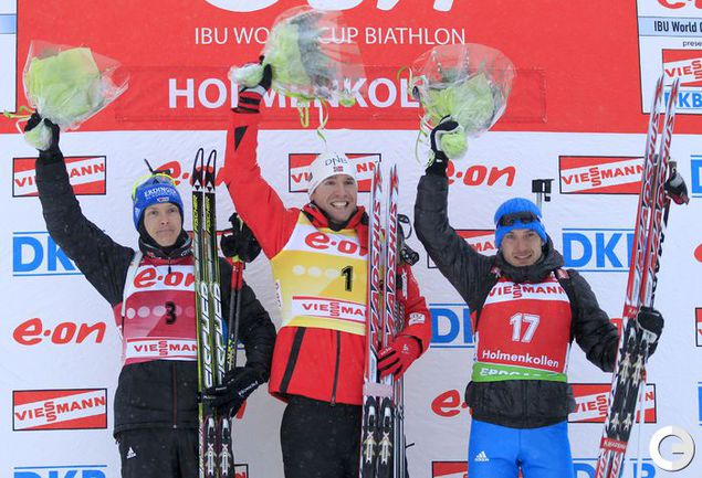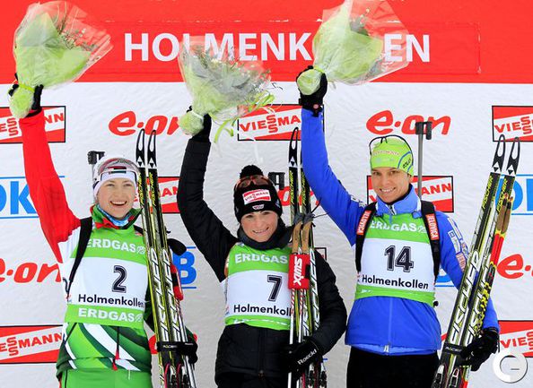 Биатлон. Холменколлен (Норвегия). Кубок мира. 7-й этап. Мужчины. Масс-старт 15 км. 1. Свендсен (Норвегия) - 40.44,1 (2 шт. круга). 2. Бирнбахер (Германия) - отставание 6,3 (0). 3. ГАРАНИЧЕВ (Россия) - 17,8 (2). Евгений Гараничев попал в тройку призеров в третьей гонке кряду. Ранее на этапе Кубка мира в Холменколлене он выиграл спринт и стал третьим в гонке преследования. Женщины. Масс-старт 12,5 км. 1. Хенкель (Германия) - 38.01,2 (1 шт. круг). 2. Домрачева (Белоруссия) - отставание 26,6 (4). 3. Грегорин (Словения) - 27,2 (0). Лучшая из россиянок - Ольга Вилухина (6 место). Фото AFP