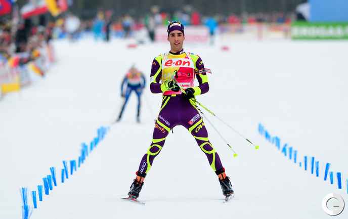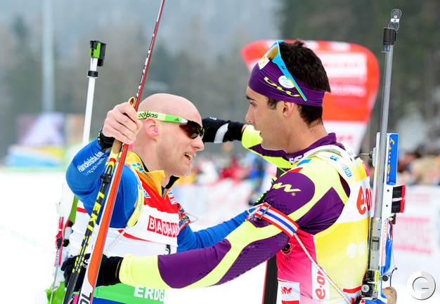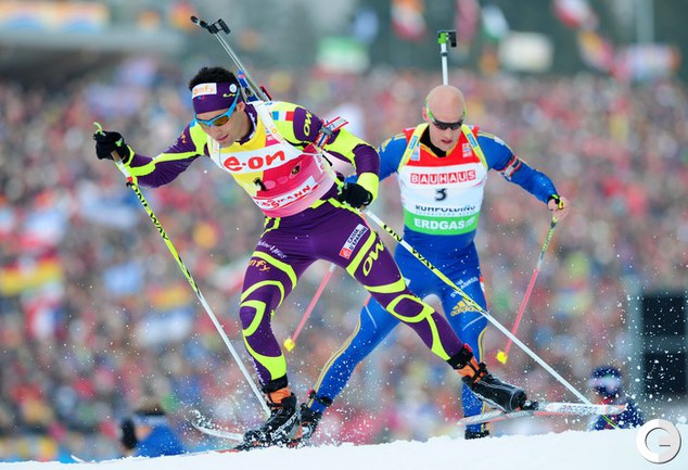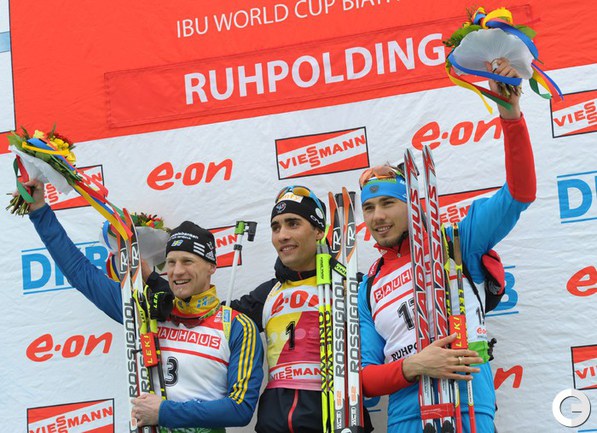 Биатлон. Рупольдинг (Германия). Чемпионат мира. Мужчины. Гонка преследования 12,5 км. 1. М. Фуркад (Франция) - 33.39,4 (4 штрафных круга). 2. Бергман (Швеция) - отставание 5,2 (2). 3. Антон Шипулин (Россия) - 22,1 (1). 4. Д. Мезотич (Австрия) - 28,4 (2). 5. Свендсен (Норвегия) - 54,4 (4). 6. С. Фуркад (Франция) - 53,0 (3). 14. Гараничев - 1.29,2 (4). 19. Маковеев (оба - Россия) - 1.47,0 (3). Женщины. Гонка преследования 10 км. 1. Домрачева (Белоруссия) - 29.39,6 (2 шт. круга). 2. Нойнер . (Германия) - отставание 25,1 (3). 3. Ольга Вилухина (Россия) - 1.15,4 (1). Фото AFP