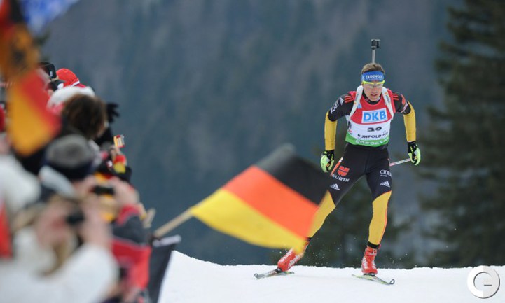 Биатлон. Рупольдинг. Чемпионат мира. Мужчины. Индивидуальная гонка, 20 км. 1. Фак (Словения) - 46.48,2 (1 промах). 2. С. Фуркад (Франция) - отставание 7,0 (1). 3. Сукуп (Чехия) - 12,3 (1)...14. ЛАПШИН (Россия) - 1.37,1 (1)...Фото AFP