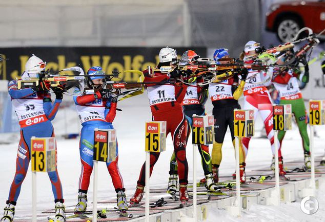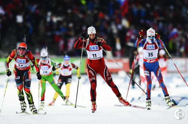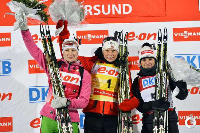02.12.2012. Тура Бергер выиграла гонку преследования на этапе Кубка мира в Эстерсунде. Ольга Вилухина стала четвертой. Кубок мира. Женщины. Гонка преследования. 10 км. 1. Т. Бергер (Норвегия) - 30.00,7 (1 шт. круг). 2. Домрачева (Белоруссия) - отставание 29,8 (1). 3. Хенкель (Германия) - 51,5 (0). 4. ВИЛУХИНА (Россия) - 1.10,0 (2). Фото AFP, REUTERS