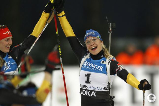 Двукратная олимпийская чемпионка, 12-кратная чемпионка мира, трехкратная обладательница Кубка мира по биатлону Магдалена Нойнер заняла второе место в своей прощальной гонке, прошедшей в рамках «Рождественской гонки» в немецком Гельзенкирхене. Фото AFP и REUTERS