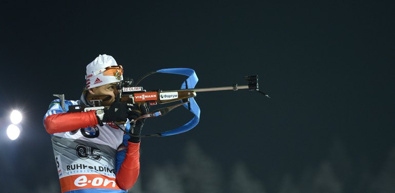 12.01.2012. Биатлон. Рупольдинг. Кубок мира. Мужчины. Спринт, 10 км. 1. М. Фуркад (Франция) - 23.51,5 (0 шт. кругов). 2. УСТЮГОВ (Россия) - отставание 16,4 (0). 3. МАКОВЕЕВ (Россия) - 33,0 (0). Фото AFP