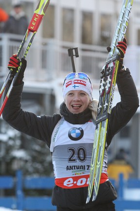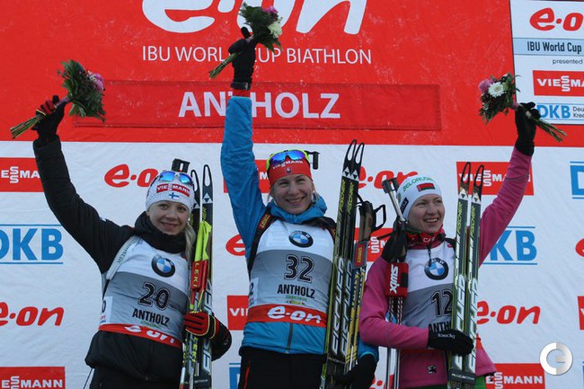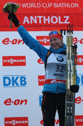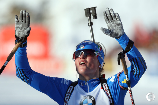 17.01.2013. Биатлон. Антерсельва. Кубок мира. Шестой этап. Женщины. Спринт, 7,5 км. 1. Кузьмина (Словакия) - 20.28,6 (0 шт. кругов). 2. Мякяряйнен (Финляндия) - отставание 16,7 (1). 3. Домрачева (Белоруссия) - 21,9 (1). 4. Пидгрушная (Украина) - 26,1 (0). 5. Н. Хорхлер (Германия) - 36,1 (0). 6. ВИЛУХИНА (Россия) - 37,1 (0)... 9. ЗАЙЦЕВА (Россия) - 44,3 (0)... 52. ЗАГОРУЙКО (Россия) - 2.17,9 (2)... 57. Е. ЮРЛОВА (Россия) - 2.25,3 (2)... 70. КОРОВИНА (Россия) - 2.52,1 (2)... 92. ЮРЬЕВА (Россия) - 3.43,0 (1). Фото AFP