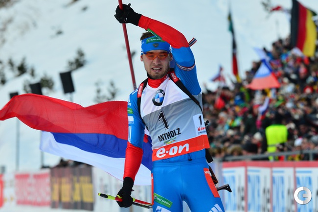 Биатлон. Антерсельва. Кубок мира. Шестой этап. Мужчины. Гонка преследования, 12,5 км. 1. ШИПУЛИН (Россия) - 31.24,2 (2 шт. круга). 2. Фак (Словения) - отставание 22,6 (1). 3. Мезотич (Австрия) - 25,8 (2). 4. М. Фуркад (Франция) - 38,5 (2). 5. Свендсен (Норвегия) - 40,0 (4). 6. ГАРАНИЧЕВ (Россия) - 41,4 (3)… 10. МАКОВЕЕВ (Россия) - 51,4 (2)… 18. УСТЮГОВ (Россия) - 1.29,6 (2)… 25. МАЛЫШКО (Россия) - 1.52,1 (4). Фото AFP