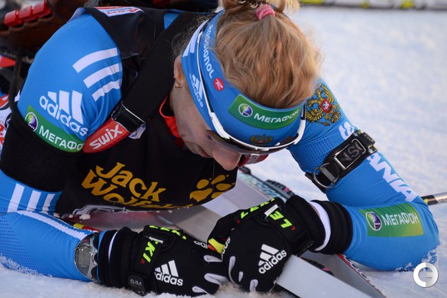 Сочи (Россия). Кубок мира. Женщины. Индивидуальная гонка, 15 км. 1. Домрачева (Белоруссия) - 45.45,2 (2 промаха). 2. ЗАЙЦЕВА (Россия) - отставание 34,6 (0). 3. Т. Бергер (Норвегия) - 46,8 (1). 4. Хенкель (Германия) - 1.20,1 (1). 5. Гвиздон (Польша) - 1.43,5 (2). 6. Мякяряйнен (Финляндия) - 1.58,6 (2)...17. Е. ЮРЛОВА (Россия) - 3.51,2 (1)...22. СЛЕПЦОВА (Россия) - 4.21,0 (3)...46. ЮРЬЕВА (Россия) - 6.41,2 (3)...48. ЗАГОРУЙКО (Россия) - 6.42,4 (2)...54. ВИЛУХИНА (Россия) - 7.55,4 (4)...56. ШУМИЛОВА (Россия) - 7.58,5 (5). Фото AFP