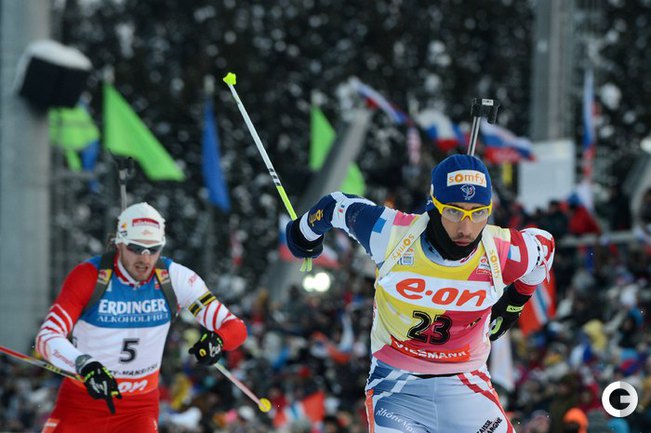 Ханты-Мансийск. Кубок мира. Мужчины. Спринт, 10 км. 1. М. Фуркад (Франция) - 24.22,6 (0 шт. кругов). 2. Хофер (Италия) - отставание 39,6 (0). 3. Бирнбахер (Германия) - 43,8 (0). 4. Зуманн (Австрия) - 53,3 (0). 5. Ландертингер (Австрия) - 53,8 (1). 6. С. Эдер (Австрия) - 57,3 (1)... 14. СЛЕПОВ (Россия) - 1.20,4 (1)... 19. УСТЮГОВ (Россия) - 1.29,2 (1)... 22. МАКОВЕЕВ (Россия) - 1.32,4 (0) 23. ГАРАНИЧЕВ (Россия) - 1.33,3 (1)... 27. ШИПУЛИН (Россия) - 1.36,7 (0)... 60. А-й ВОЛКОВ (Россия) - 2.40,8 (0)... 63. ПЕЧЕНКИН (Россия) - 2.41,7 (3)... 69. МАЛЫШКО (Россия) - 2.51,2 (4). Фото AFP