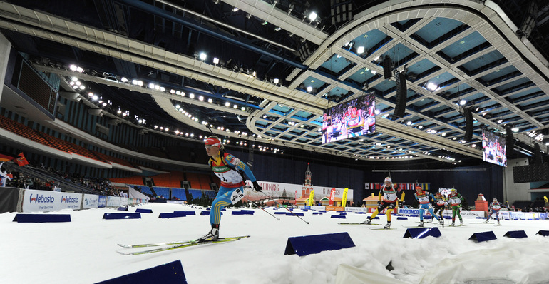 Россиянка Ольга Вилухина заняла пятое место в женском масс-старте на "Гонке чемпионов-2013" в московском спорткомплексе "Олимпийский". Победительницей стала Анастасия Кузьмина, выступающая за Словакию. Россиянин Антон Шипулин выиграл масс-старт в рамках "Гонки чемпионов-2013" в Москве. Второе место занял словенец Яков Фак, третье – швед Бьерн Ферри. Фото - Федор Успенский, "СЭ"