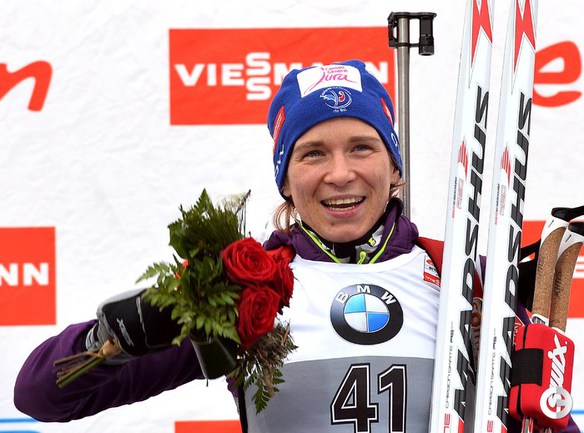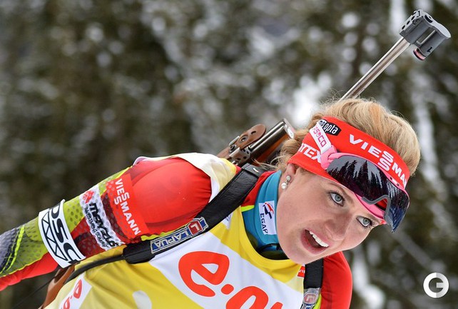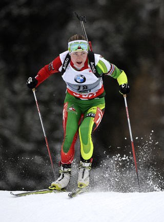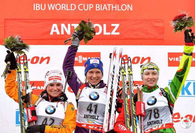 Биатлон. Антерсельва. Кубок мира. Женщины. Спринт. 7,5 км. 1. Бескон (Франция) – 20:30,2 (1 промах). 2. Хенкель (Германия) – отставание 6,7 (0). 3. Домрачева (Беларусь) – 10,1 (2). 4. Данкли (США) – 10,7 (0). 5. РОМАНОВА (Россия) – 11,8 (0). Фото AFP