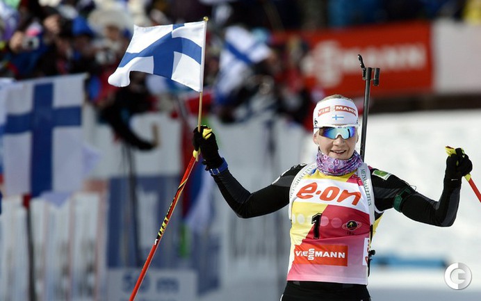 Контиолахти (Финляндия). Кубок мира. Женщины. Гонка преследования. 10 км. 1. Мякяряйнен (Финляндия) – 30.52,01 (2 шт. круга). 2. Домрачева (Белоруссия) – отставание 1.00,0 (1). 3. ЗАЙЦЕВА (Россия) – 1.54,3 (5). Фото AFP, REUTERS