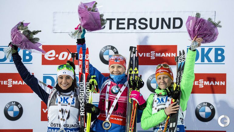 Эстерсунд (Швеция). Кубок мира. Женщины. Гонка преследования. 1. Мякяряйнен (Финляндия) – 30.45,1 (2 шт. круга). 2. Вирер (Италия) – отставание 1,9 (1). 3. Ф. Хильдебранд (Германия) – 3,3 (0)