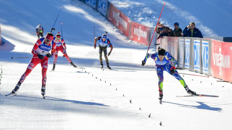 Француз Жан-Гийом Беатрикс одержал первую личную победу в карьере в Кубке мира, опередив норвежца Эмиля Хегле Свендсена на финише мужского масс-старта в Поклюке. Третью строчку в борьбе с немцем Симоном Шемпом занял еще один норвежец Оле Эйнар Бьорндален. Лучший из россиян Антон Шипулин стал 11-м.