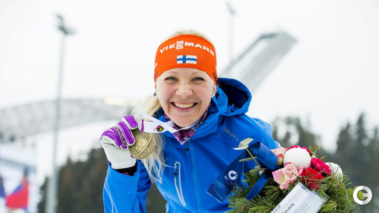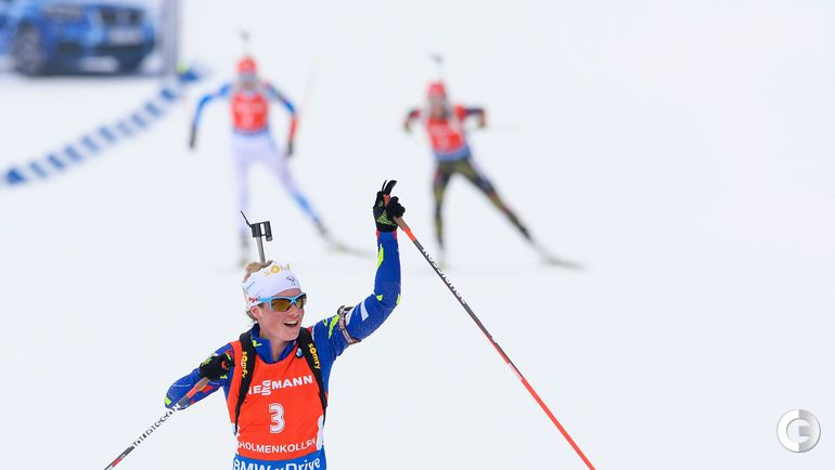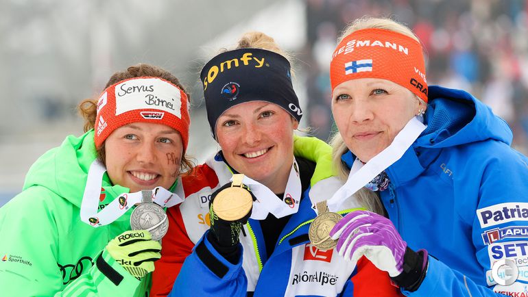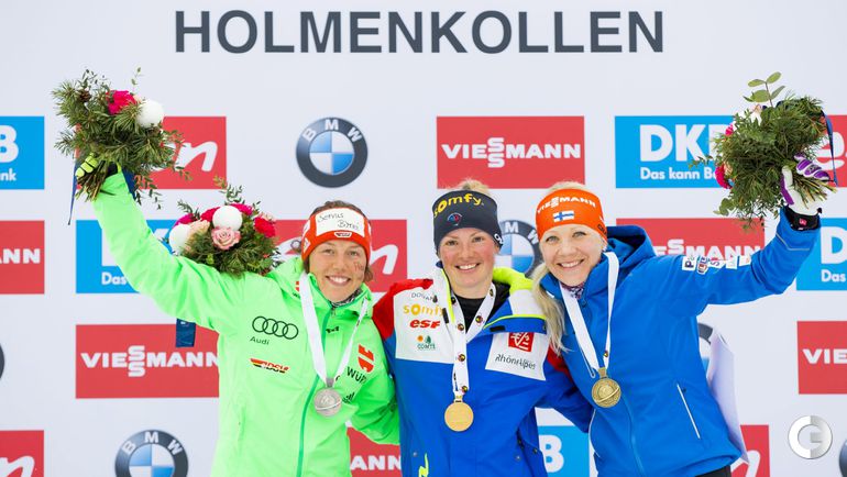 Холменколлен. Чемпионат мира. Женщины. Масс-старт, 12,5 км. 1. Дорен-Абер (Франция) – 35.28,5 (0 шт. кругов). 2. Дальмайер (Германия) – отставание 7,3 (1). 3. Мякяряйнен (Финляндия) – 8,1 (1).
