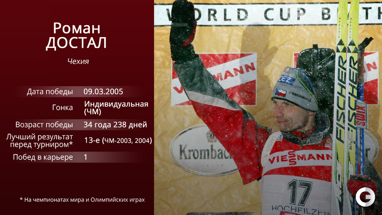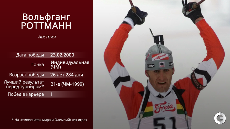 Накануне в индивидуальной гонке чемпионата мира в Хохфильцене сенсационно победу одержал Лоуэлл Бэйли. Это не первый раз, когда средние по уровню биатлонисты выигрывают главные награды. Вспоминаем, кому покорилась вершина до американца.
