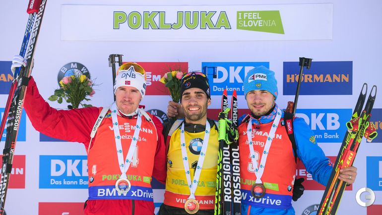 Француз Мартен Фуркад выиграл гонку преследования на этапе Кубка мира в Поклюке. Россиянин Антон Шипулин пришел к финишу третьим. К последней стрельбе они подошли вровень, но Шипулин допустил один промах и боролся уже с норвежцем Эмилем Хегле Свендсеном за вторую строчку.