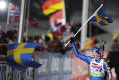 Два неточных выстрела на первом огневом рубеже стоили Зайцевой лидерства. И хоть она и была точна при второй стрельбе, а Юнссон потребовался дополнительный патрон, ногами россиянка навязать борьбу шведке не смогла. Судите сами: после "стойки" представительница Скандинавии выигрывала у капитана сборной России всего 7 секунд, а на финише ее преимущество составило уже 16. Юнссон даже позволила себе финишировать с национальным флагом, чем была невероятно довольна.
