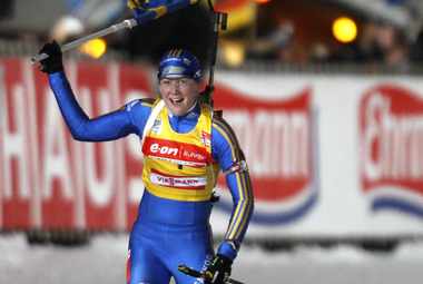 После этого борьбу за призовые позиции между собой вели пять немок, явно разозлившихся на себя за провал в пятничной эстафете, шведка Хелена Юнссон и примкнувшая к ним Дарья Домрачева.