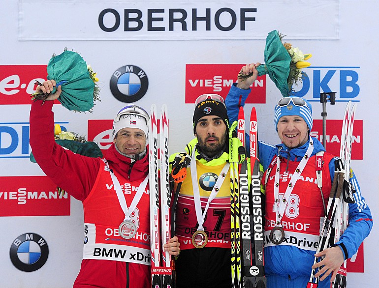 Сегодня. Оберхоф. Оле Эйнар БЬОРНДАЛЕН, Мартен ФУРКАД и Тимофей ЛАПШИН. Фото - AFP