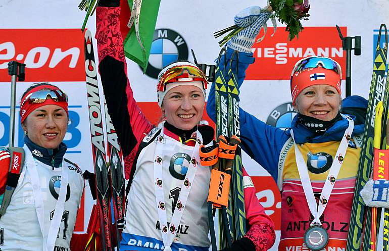Суббота. Антерсельва. Дарья ВИРОЛАЙНЕН, Дарья Домрачева и Кайса МЯКЯРЯЙНЕН. Фото - AFP