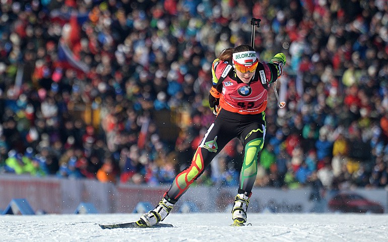 Большинство гонок Кубка мира у женщин в нынешнем году проходит под знаком противостояния Дарьи Домрачевой и Кайсы Макарайнен. Однако на этот раз белорусская и финская спортсменки остались за пределами пьедестала. Макарайнен на огневых рубежах допустила три промаха, а Домрачева ошиблась дважды. Тем не менее, обе сумели занять места в первой десятке, а значит, будут бороться за победу в гонке преследования. Трехкратная олимпийская чемпионка Сочи заняла итоговую четвертую позицию, уступив лидеру 23 секунды, а Макарайнен осталась седьмой, проиграв 30,5. В борьбе за Большой хрустальный глобус преимущество последней сократилось до 40 очков.