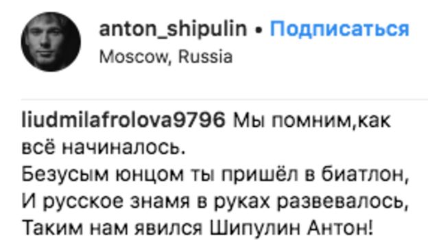 "Уважаемый Антон!!! Прошу Вас продолжить бегать, у меня сын перестал смотреть биатлон, только потому что Вас нет!!! Так и говорит, не буду смотреть, пока Шипулина нет!!!"