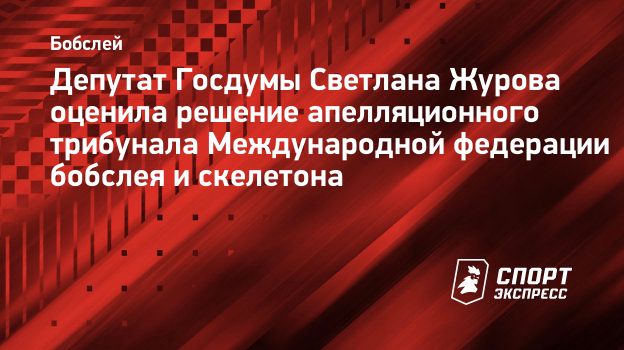 Олимпийская чемпионка и депутат Госдумы Светлана Журова прокомментировала решение апелляционного трибунала Международной федерации бобслея и скелетона (IBSF), который признал незаконным решение конгресса организации о запрете на участие российских спортсменов в соревнованиях.