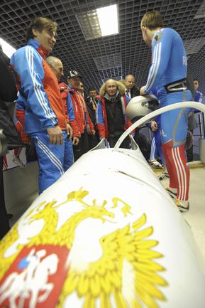 Премьер-министр РФ Владимир Путин посетил санно-бобслейный комплекс в "Парамоново" в Дмитровском районе Московской области, где через несколько дней пройдет чемпионат Европы и финальный этап Кубка мира по бобслею и санному спорту. Фото REUTERS