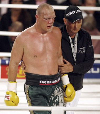 Неудачей завершилась попытка знаменитого немецкого тяжеловеса Акселя Шульца вернуться на профессиональный ринг. Вчера вечером в Галле 37-летний боксер, в свое время трижды претендовавший на чемпионский пояс IBF в тяжелом весе, проиграл техническим нокаутом в 6-м раунде американцу Брайану Минто. Отметим, что за поединком, который стал для Шульца первым с 1999 года, наблюдало 12 тысяч зрителей. |