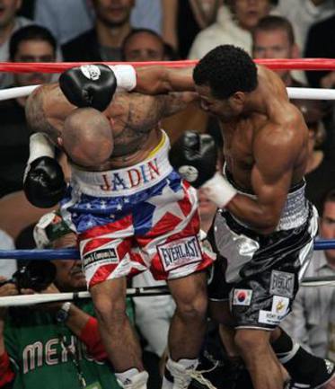 Как сообщает Reuters, сегодня ночью в Лас-Вегасе американец Шейн Мосли завоевал титул временного чемпиона WBC в категории до 66,7 кг, победив своего соотечественника Луиса Колласо. Бой проходил с существенным преимуществом Мосли, который в 11-м раунде отправил своего соперника в нокдаун. По итогам 12 раундов все трое судей зафиксировали внушительный перевес Мосли: 118-109 (двое судей) и 119-108. |